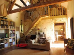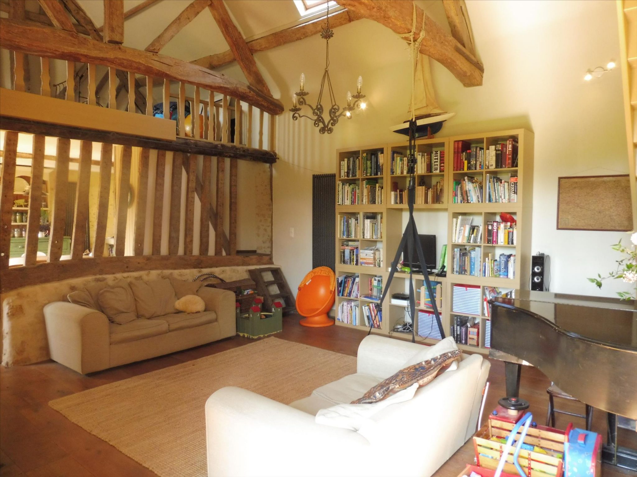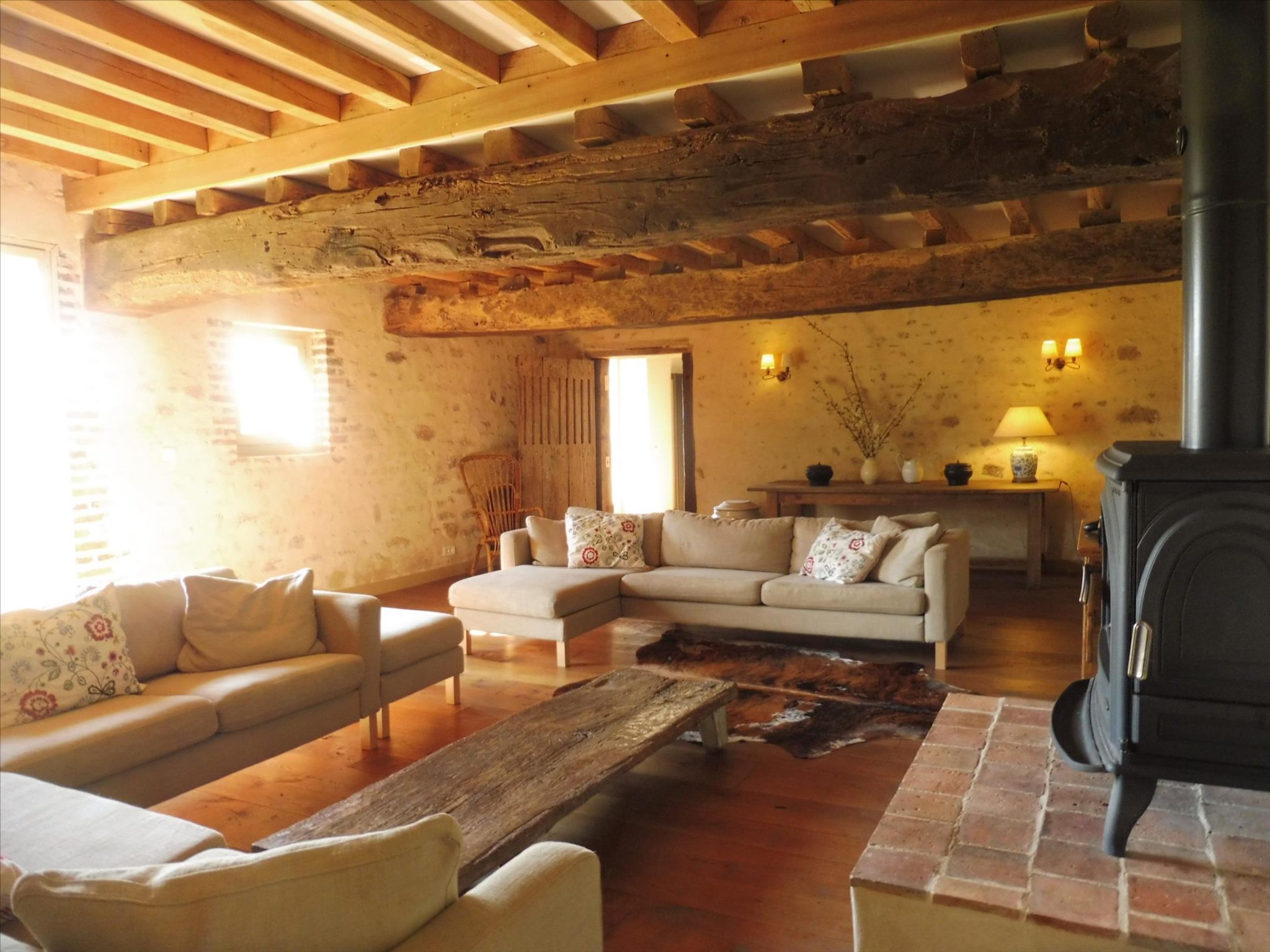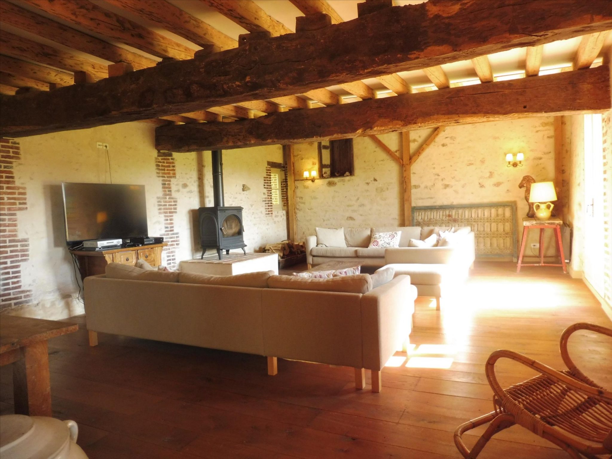 A charming luxurious home of character with approx. 240 m² of living space. The property has been completely renovated retaining many original features whilst enjoying large living spaces with every modern comfort. Large entrance hall flows to the kitchen/diner with double aspect windows, onto the living room with a large stone fireplace , a further large salon with wood burning stove – – all reception rooms with beautiful beams and tiled floors. From the entrance hall is a ground floor bathroom and wc. From the hallway staircase the landing area leads to two bedrooms and a family shower-room with wc. From the living room a second staircase leads to a further two large bedrooms and a large shower room and wc. There is also a large mezzanine study or fifth bedroom. To the front/ south facing side of the property there is a large terrace for sunny afternoons and evenings with stunning views landscaped with planting and seating areas, Vegetable plot and fruit trees. Adjoining the house is a workshop/storage space. A large detached stone barn 96m² with a superb loft above – ripe for a project. Open barn of 100m². Parking area. All surrounded by 7 acres of beautiful pasture land with stunning views, with a stream running along the southern boundary of the 7 acres. The property is situated approx. 5 km from Courtomer and Le Merlerault both small towns with all amenities.