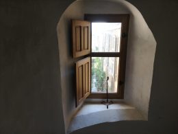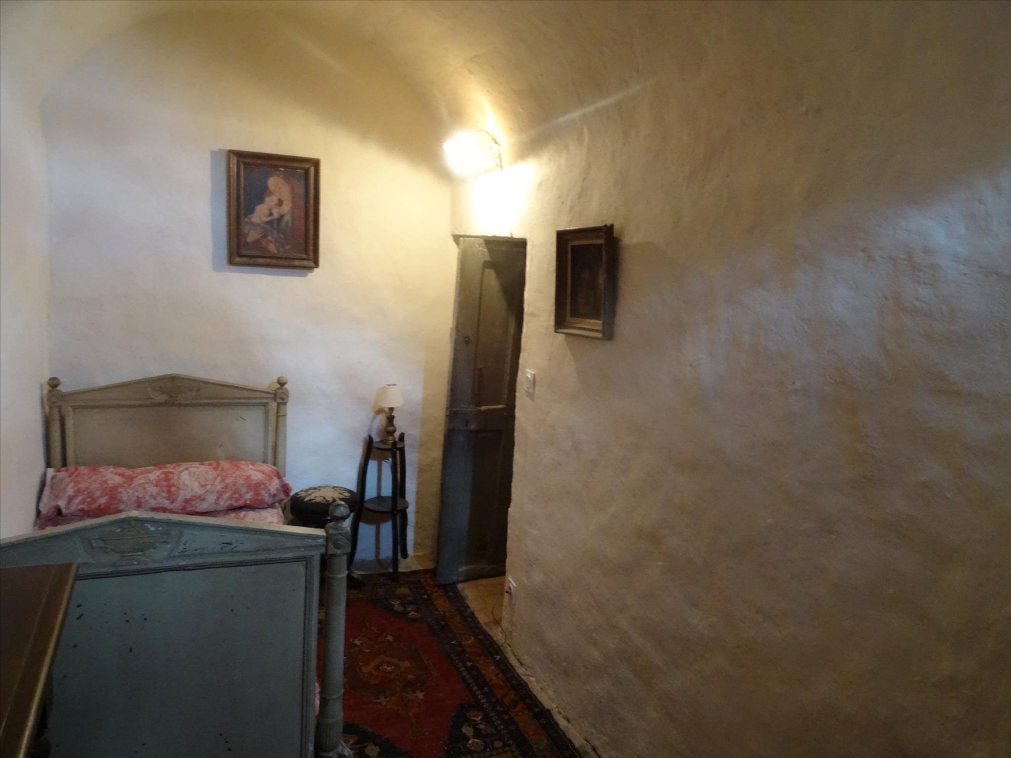 From the spiral staircase on the first floor is a large bedroom with fireplace, with shower room and wc, and a smaller vaulted bedroom; on this level also a boiler room and attic space. There is a second floor bedroom and attic space.