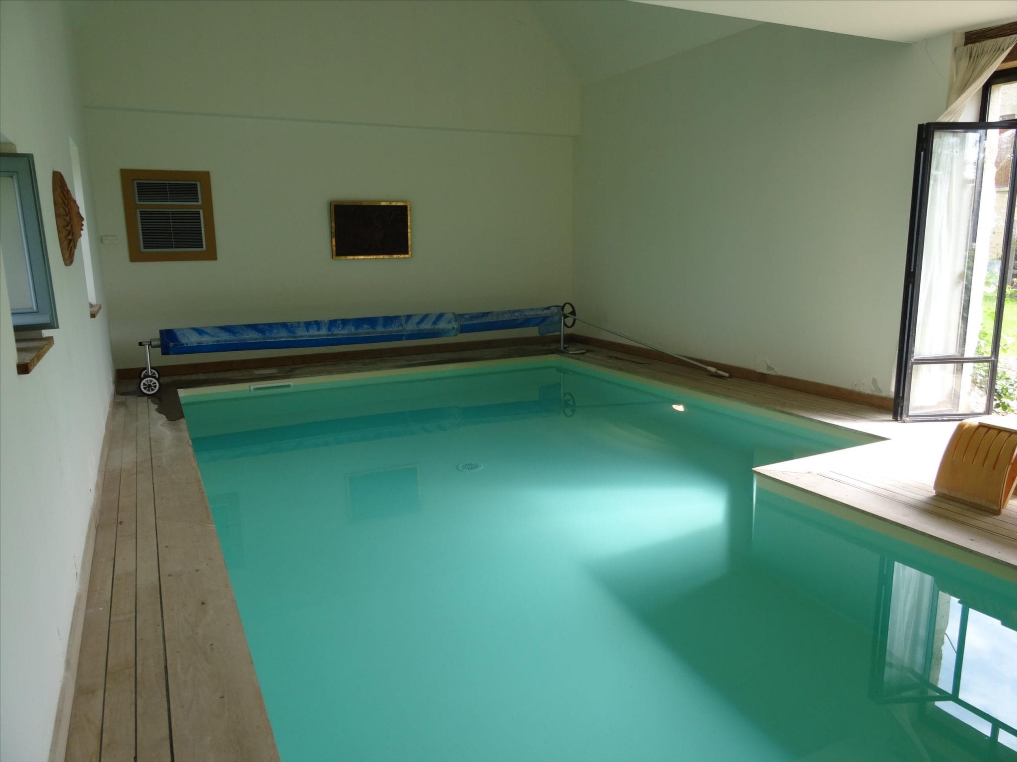 The accommodation includes an entrance hall with wc, kitchen/dining room with original tiled floor and stone fireplace. Living room with stone spiral staircase from a Burgundy chateau . Indoor swimming pool with cathedral ceiling and doors to the garden.