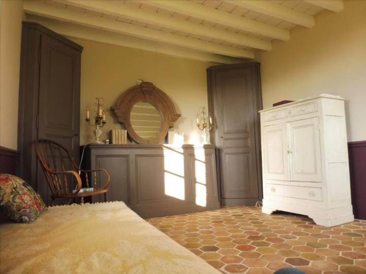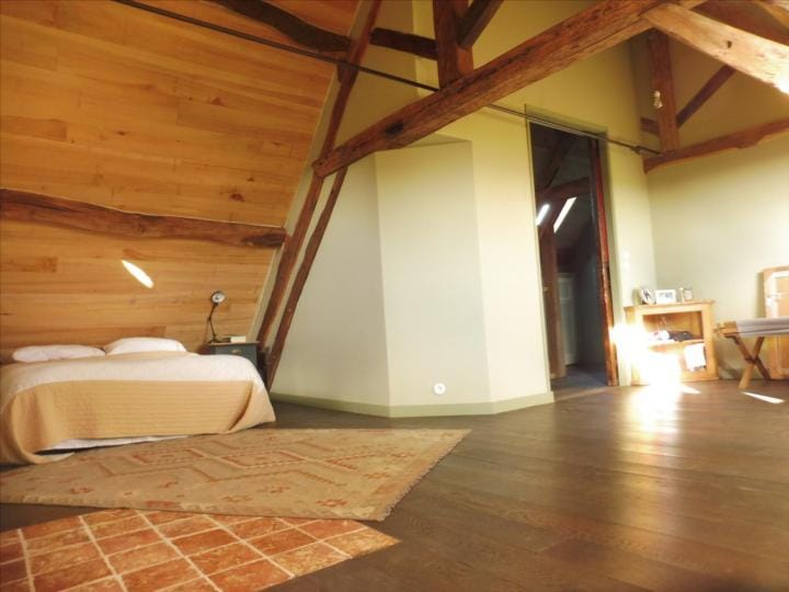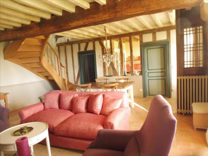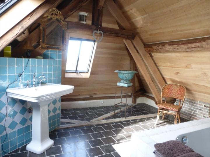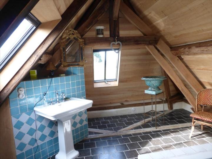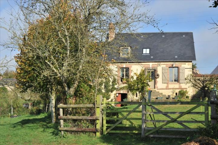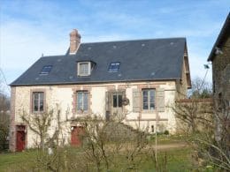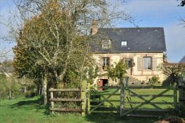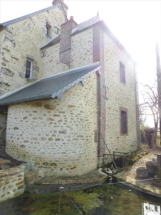 The property has been beautifully restored to offer a fitted kitchen open plan onto a living area with fireplace and exposed beams, lounge/bedroom, shower room, wc. First floor: landing to a master bedroom with en suite bathroom, further bedroom, wc. In the basement, storage room with bread oven , boiler room. Oil fired central heating, DGW, . Large detached stone outbuilding comprising 4 areas (former stables), garage. The property stands on over 3 acres of land with unbroken views over the countryside, lovely gardens, lawns, shrubs, orchard and field. Charming ensemble. Good accessibility to Paris in 2h by road and 20km from Rail link at L’Aigle (1h20). Excellent for the UK with the port at Caen less than 1h30 and Calais 3h30.