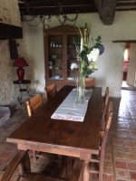 The main house offers 200 m² of living space comprising on the ground floor fitted kitchen with breadoven , larder, living room with fireplace and woodburner, dining room with fireplace and original tiled floor, breakfast room, utility room, bedroom, bathroom,wc. Upstairs, landing to 2 bedrooms ( one with dressing room), bathroom,wc. Electric heating ( pipe for a cental heating on the spot). There is detached stone outbuilding with new roof. The property stands on 6.5 acres of land with natural edges.