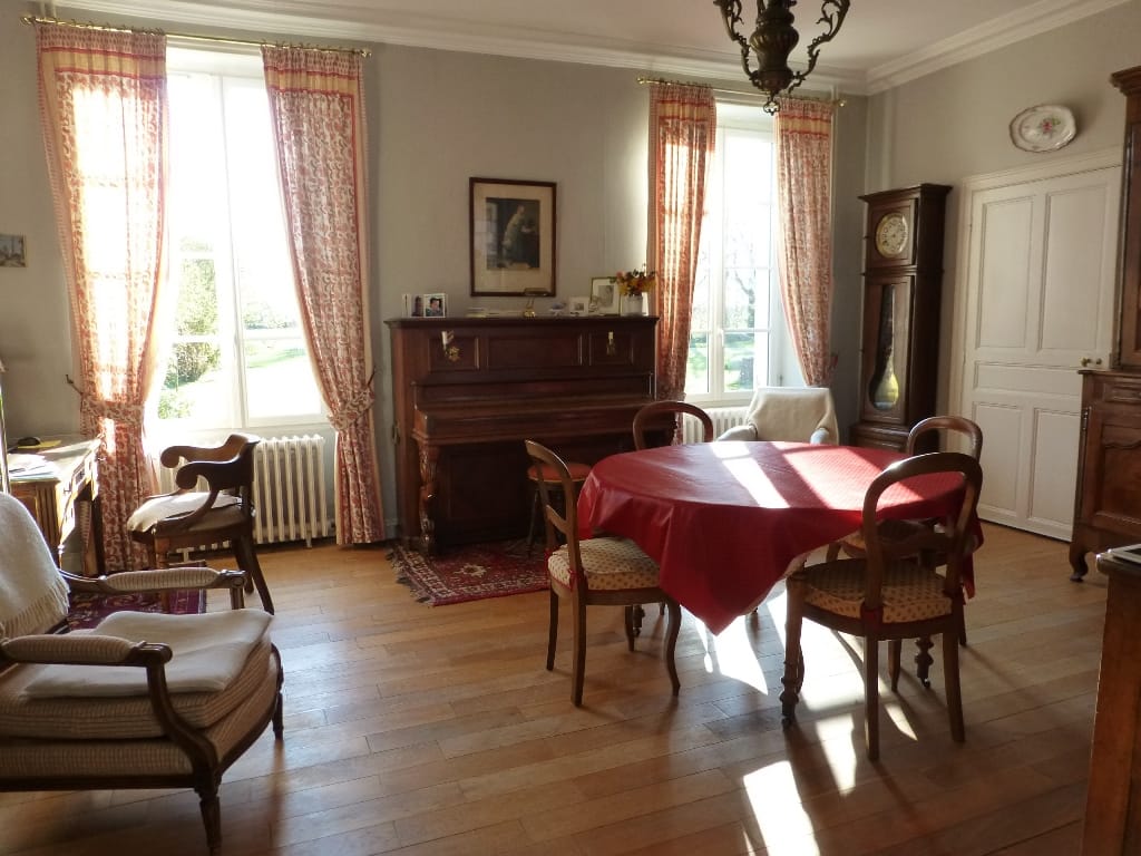 En sortie de village, au calme, au bout de son allée, authentique demeure fin 19 ème siècle disposant d’une vaste entrée avec son escalier, salon de 40 m² avec cheminée, cuisine séjour avec cheminée buanderie.